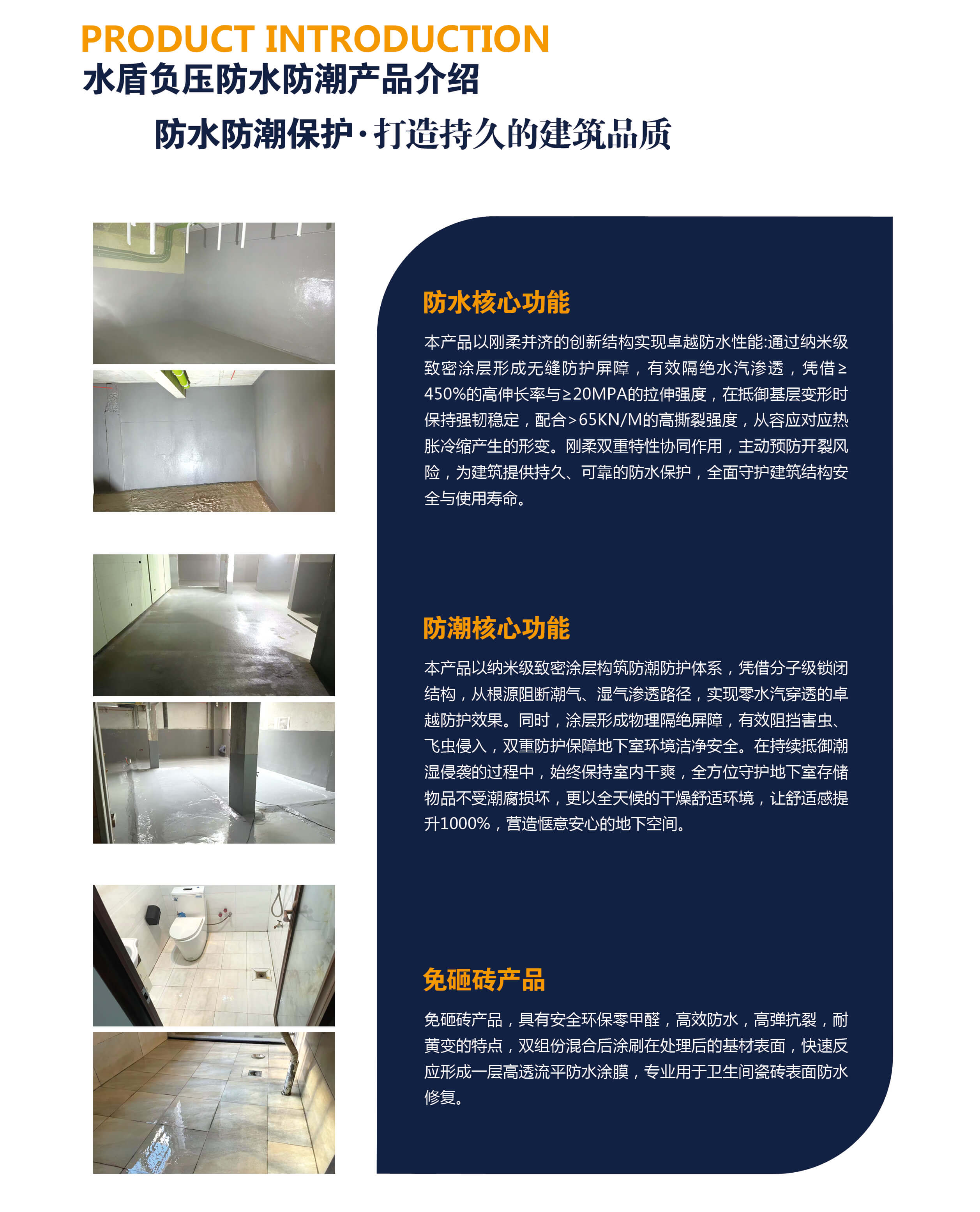 水盾地下室負(fù)壓防水防潮施工體系專為高端別墅地下室設(shè)汁,精準(zhǔn)解決負(fù)壓環(huán)境下的滲漏、濕難題。為高端住宅地下空間構(gòu)建可靠的防水防潮屏障,以卓越品質(zhì)守護(hù)地下空間干爽舒適。